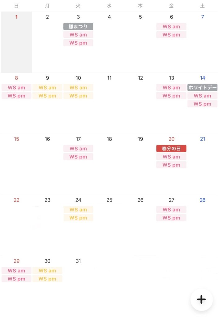 講習会の日程@東京 2026年3月 2026年1月30日 inishie ・am ~ 午前10:00-12:00 pm ~午後13:00-15:00 ・担当講師 黄色:佐野智恵子 ピンク: 荒木ヨシミ ・ご予約をLINEで承っております。工房いにしへ公式@inishie でご検索頂くか、下記のSNSフォローボタンをクリックしてください。
